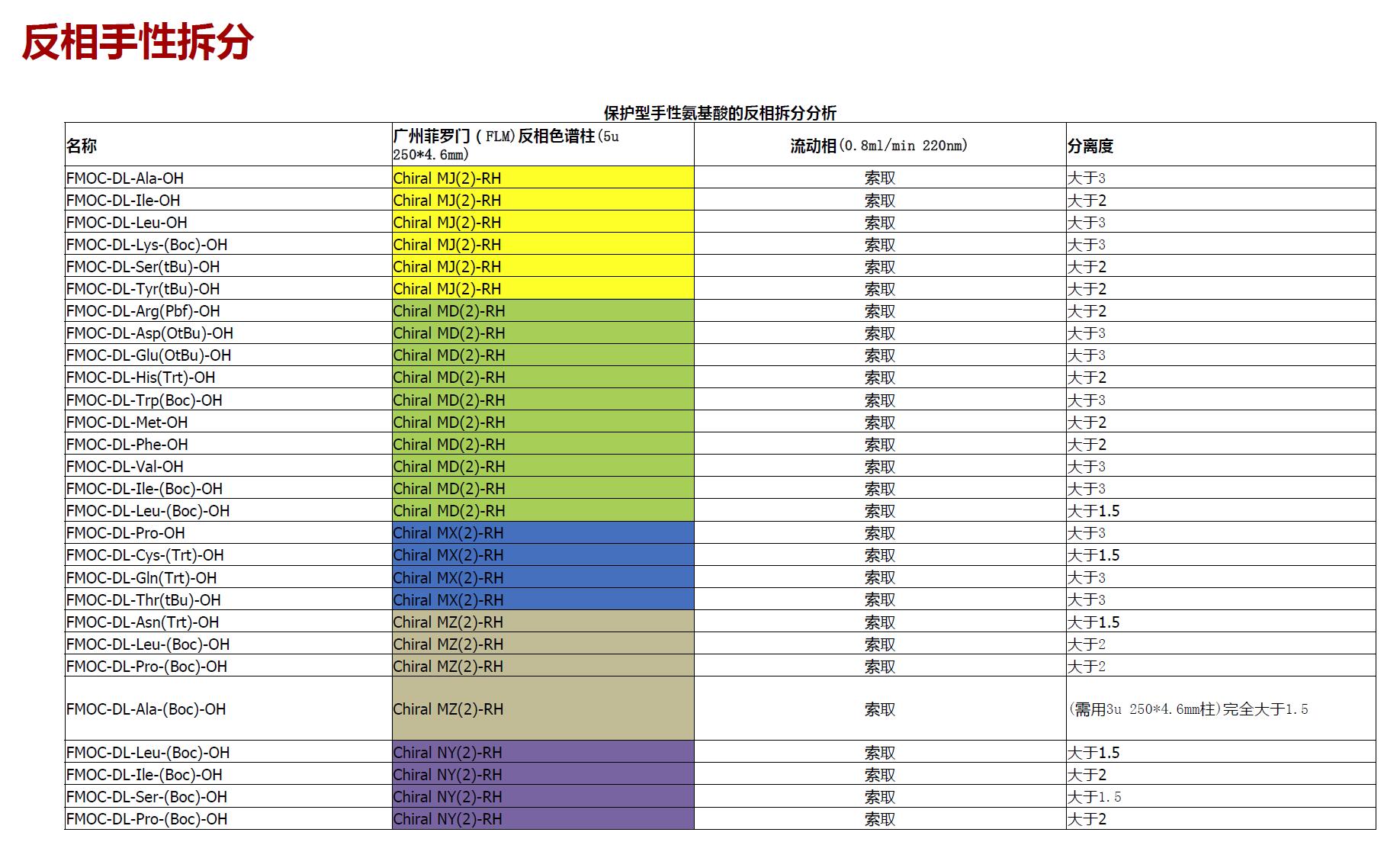以上手性柱拆分保護型氨基酸的起始流動相建議: