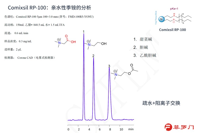 使用Comixsil RP-100色譜柱,通過陽離子離子交換和疏水作用保留和分離這兩個化合物。
