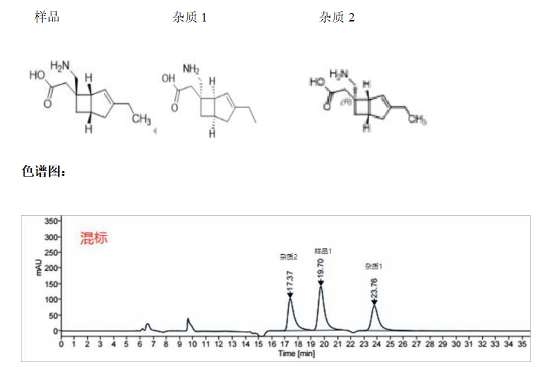 App ID: FLM-B240007 Chiral INC 手性柱對米洛巴林的手性拆分 方法:詳情請咨詢 色譜柱:Chiral INC 5μm 250×4.6 mm (貨號:FMF-JY5-I03) 流速:0.5 mL/min 檢測:UV210nm, 35oC